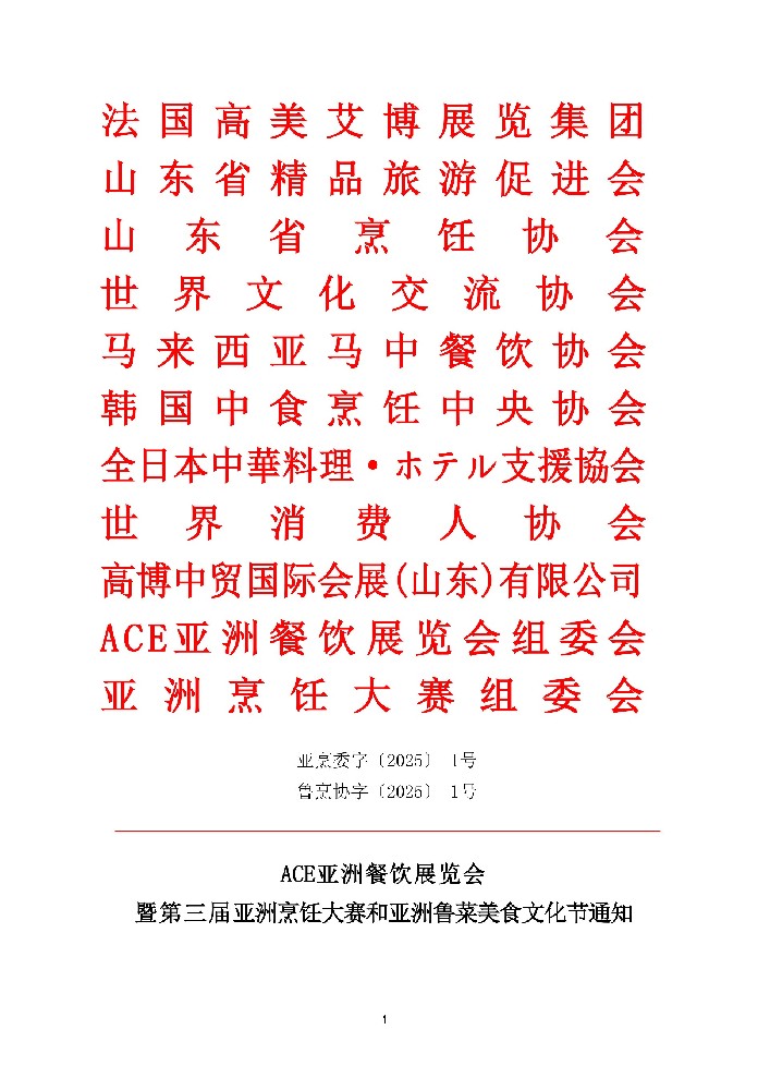 2月21日,ACE2025第三屆亞洲餐飲展覽會(huì)(簡(jiǎn)稱(chēng)ACE第三屆亞餐展)組委會(huì)與山東省魯菜產(chǎn)業(yè)發(fā)展促進(jìn)會(huì),舉行了第一次工作會(huì)議。山東省魯菜產(chǎn)業(yè)發(fā)展促進(jìn)會(huì)副會(huì)長(zhǎng)兼···